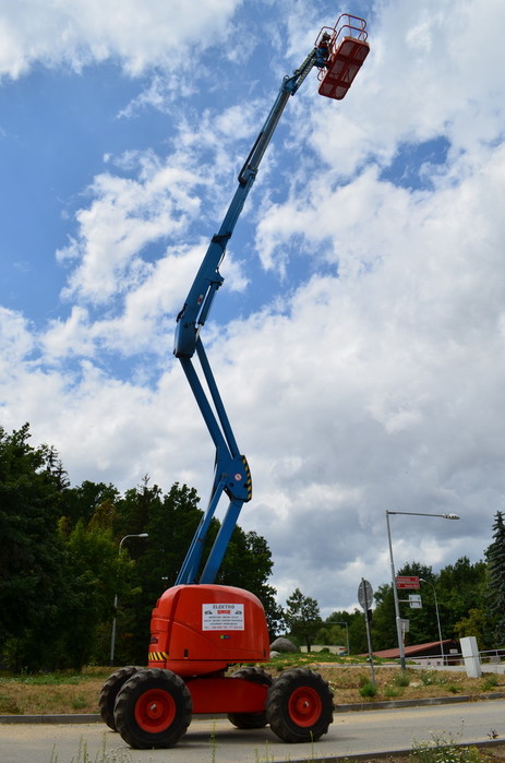 - halová kloubová plošina na bateriový pohon s dosahem 13,5 m